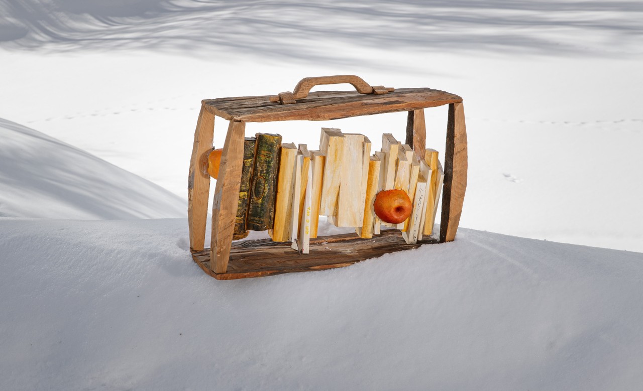 Legno, polifilla, libri dipinti