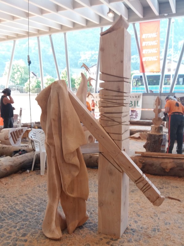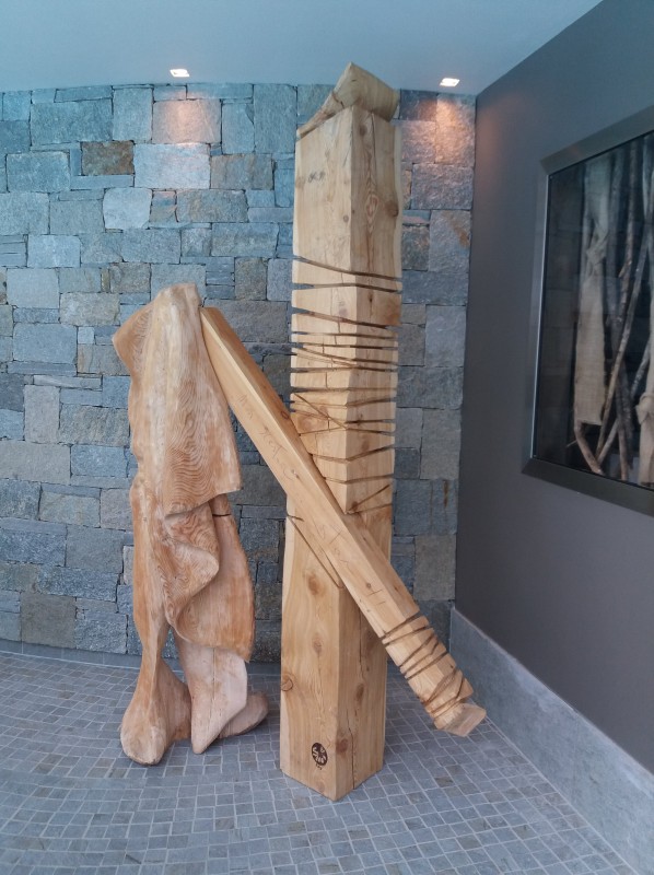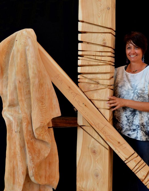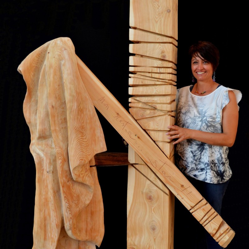 La mia scultura vuole descrivere, come nella canzone di Francesco Guccini, tutte le sfumature del paesaggio interiore. Come in una relazione di coppia in cui bisogna trovare un equilibrio, anche la mia opera cerca quell’equilibrio tra movimenti e forme. C’è un pilastro portante, il più alto, quello che ha “radici”. Su quello inclinato si appoggia un panneggio, forse dimenticato o lasciato lì volutamente, dopo le DOMANDE CONSUETE: “Non andare! Vai! Non restare! Stai! Non parlare! Parlami di te!”.