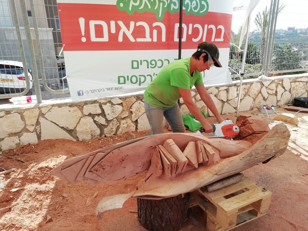 E' il momento di iniziare a lavorare in Galilea e mi trovo un grosso tronco di eucalipto che profuma e anch'esso lascia tanta segatura. Scolpisco in una piazza del centro culturale insieme ad artisti locali e anche provenienti dal Quebek, Argentina, Messico.
