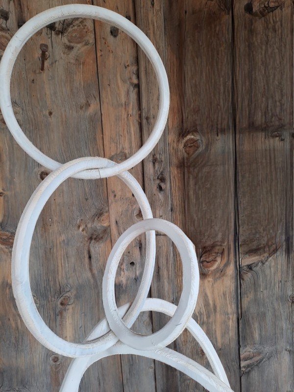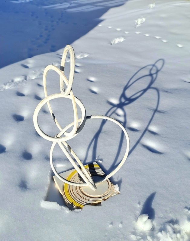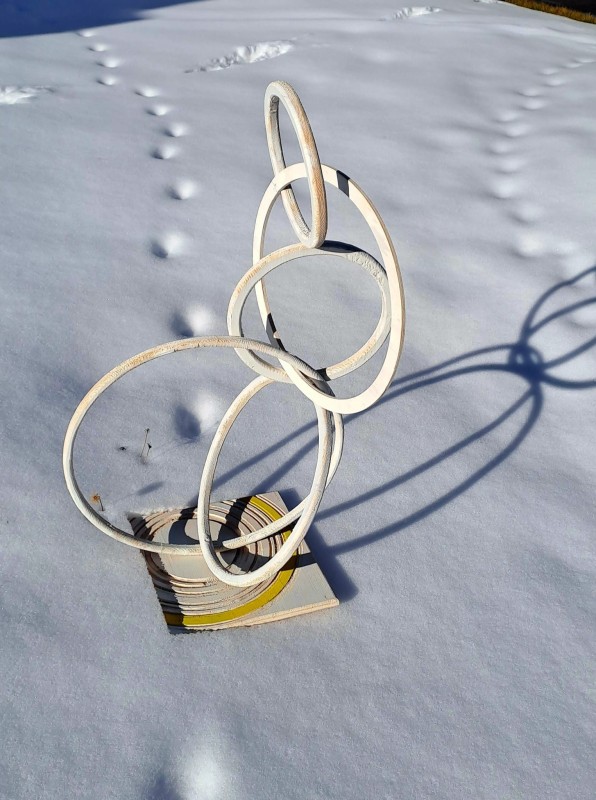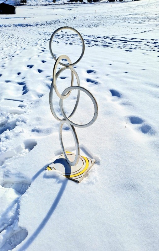 L'opera nasce da una scomposizione dei cinque cerchi olimpici. Se nel simbolo tradizionale i cerchi sono identici e concatenati, qui vengono scomposti e reinterpretati in cinque dimensioni diverse.